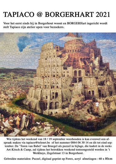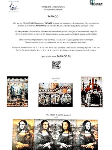 Omdat de combinatie van Corona, mooi weer, veel volk op de been en de beperkte oppervlakte van de vroegere ouderlijke patisserie waar de expo plaatsvindt niet de garantie geeft dat Tapiaco iedereen (uitgebreid) zal kunnen verwelkomen bieden we enkele alternatieve data aan om de tentoonstelling te komen bezoeken.